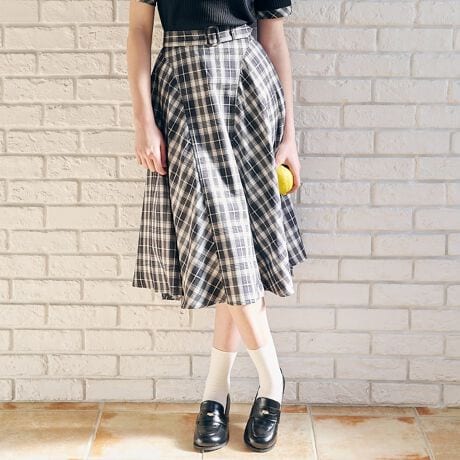 フレアーたっぷりの美シルエットが目を惹くチェックスカート。