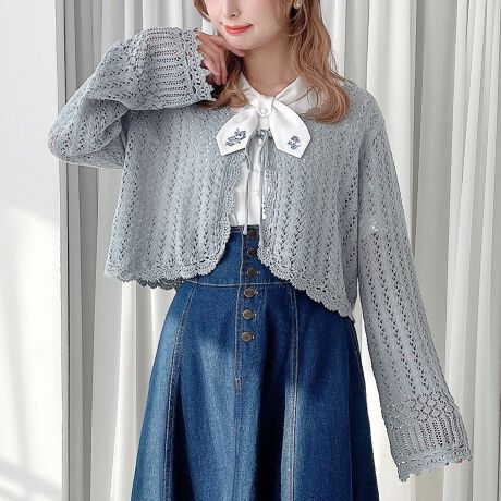 端のスカラップにこだわり、シンプルなカーデと差がつく特別感のある仕上がりに。