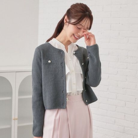 ・全体に施された鹿の子編みとラメ混のニットで、トリミングしたようなデザインが上品さを演出し、カジュアルからフォーマルまで幅広く活躍。