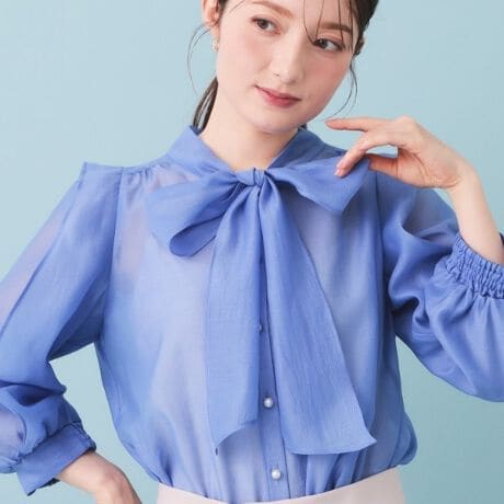 オーガンジーのシアー感がトレンドなリボンフリルブラウス
