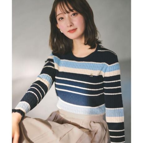 ランダムボーダーにゴールドパーツが可愛いケーブルニット