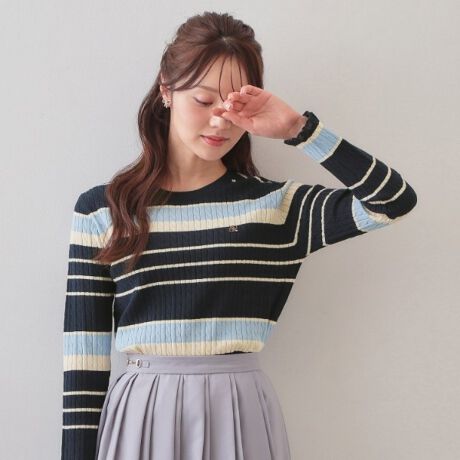 ランダムボーダーにゴールドパーツが可愛いケーブルニット