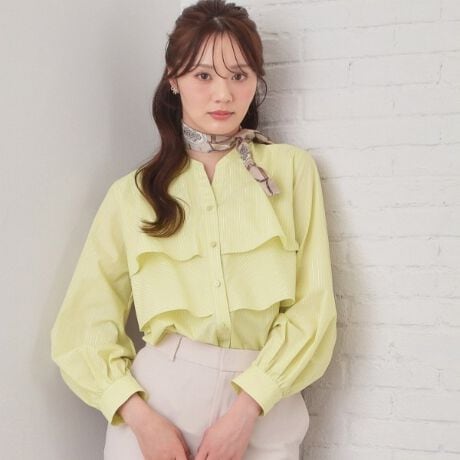 ・フロントに施された立体的なフリルが華やかで、視線を引きつけるデザインポイントに。