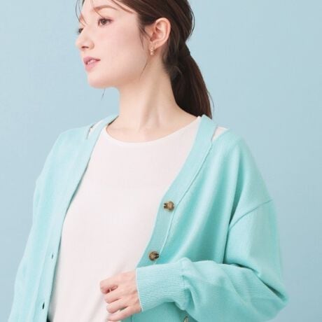 ・首回りを美しく見せるVネックデザインで、インナーとの重ね着も楽しめます。