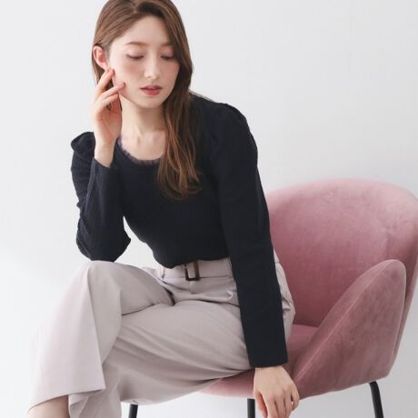 ・柔らかなパフスリーブが女性らしさを引き立て、さりげない華やかさをプラス。