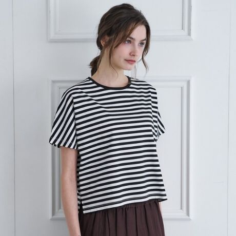 ●カジュアルなボーダーも、素材のツヤ感と洗練されたデザインでスタイリングを格上げします。