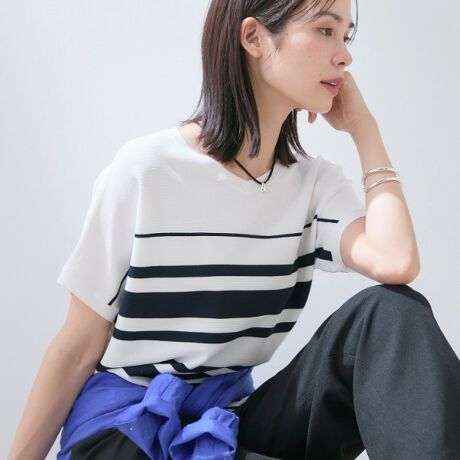大人のこなれ感を演出するVネックのフレンチスリーブニット。