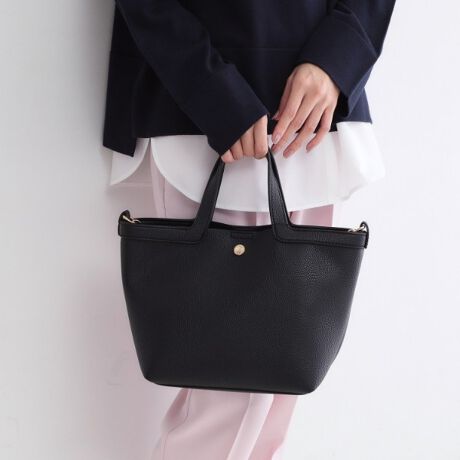 キレイめでもカジュアルでも様々なスタイリングに合わせやすいスッキリしたデザインのミドルショルダーバッグ。