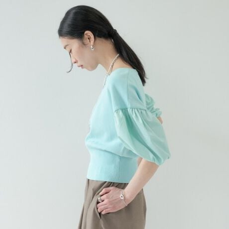 袖部分はハリのある布帛素材を使用し、バルーンシルエットを美しくキープ。