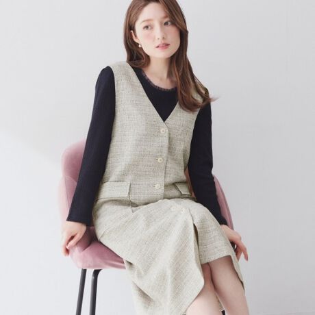 サマーツイードが涼しげな前開きジャンスカワンピース