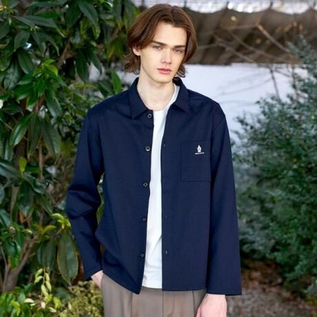 表面のきめが細かく上品なカットソー素材で仕立てた、シャツ型の羽織りアイテムです。