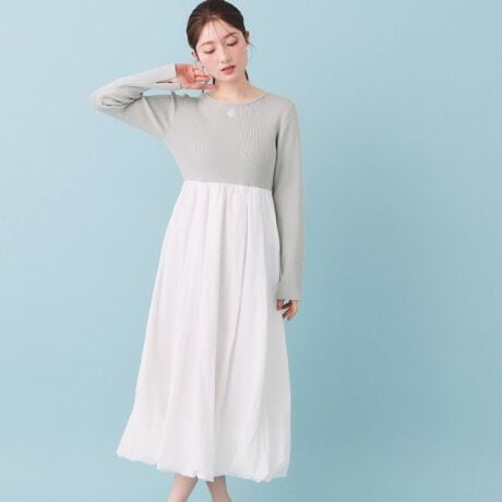 ・リブニットと軽やかな素材のバルーンスカートが絶妙なコントラストを生み出し、こなれた印象を与えます。