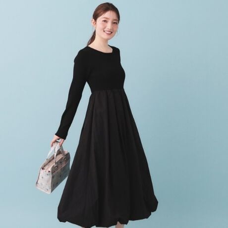 ・ドッキングバルーンスタイルが特徴のロングフレアワンピース。