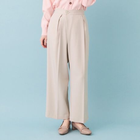 フロントラップ風に変形ゴールド釦がアクセントのハイウエストワイドパンツ