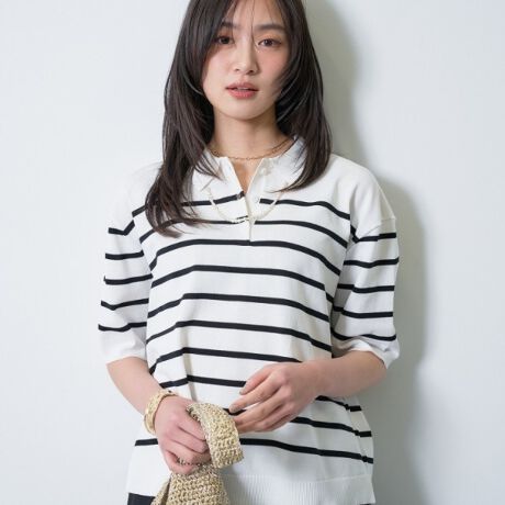 強撚コットンを使用した、清涼感のあるポロ衿トップス。