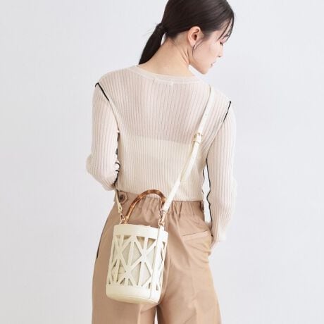 バンブーの持ち手が上品感を演出するバケツ型ワンハンドルバッグ。