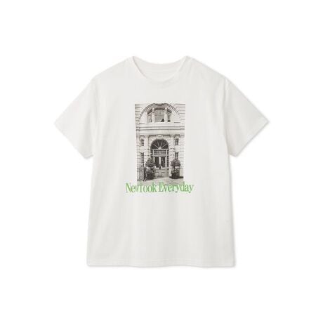 モノクロ写真にカラーロゴを効かせたフォトプリントTシャツが遊び心たっぷり。
