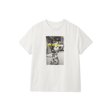 モノクロ写真にカラーロゴを効かせたフォトプリントTシャツが遊び心たっぷり。
