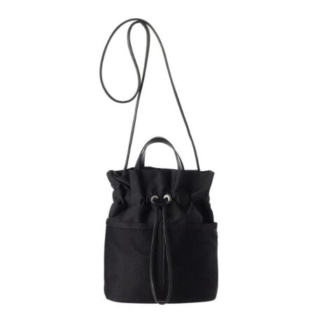 上品なポリエステル素材にポイントでレザーを組み合わせた、カジュアル過ぎないお洒落なバッグです。