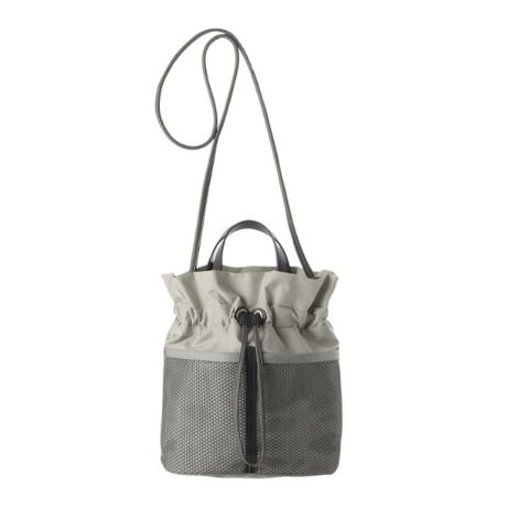 上品なポリエステル素材にポイントでレザーを組み合わせた、カジュアル過ぎないお洒落なバッグです。