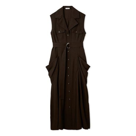 大胆なビッグポケットと胸元のパッチポケットにサファリムードが漂うトレンドワンピース。