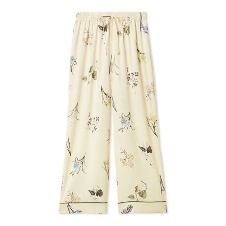リアルで繊細な大柄のフラワーパターンが癒しを届けてくれる、パイピング入りの裏地付きロングパンツ。