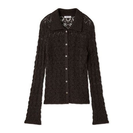 繊細なクロシェ編みが洒落たムードを叶えるポロニットカーディガン。