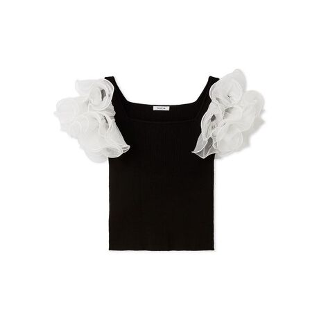 まるで花を纏ったかのような着映え感を演出する、デコラティブなスリーブがポイントになったニットトップスです。