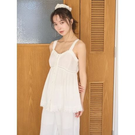 <b>レーステープが華やかなコットンガーゼのタンクトップ</b>