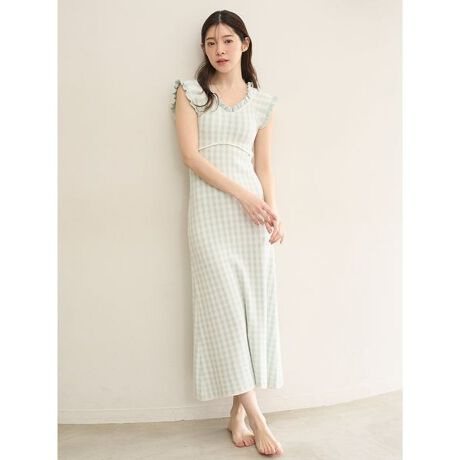 春先に似合うスムースな薄手ニットを使用した、ギンガムチェック柄のワンピースです。