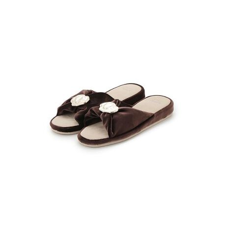 上品な光沢感のあるベロア生地を使用した、足元をフェミニンに演出するルームスリッパです。