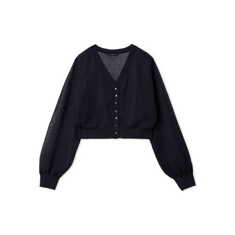 繊細なラメがきらめくシアー素材でお作りした、軽やかなクロップドカーディガン。