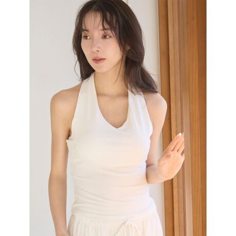 <b>上質な肌触りを楽しめるシルク混のホルターネック</b>