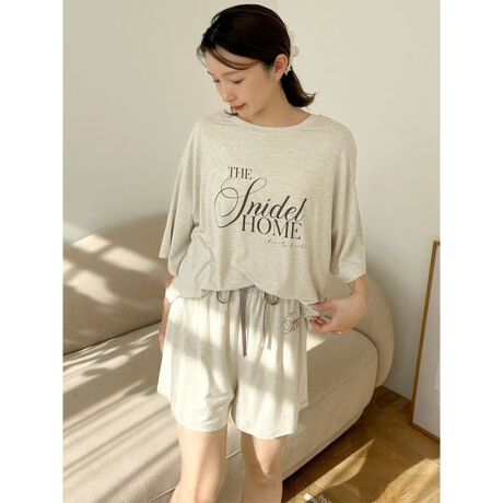 フロントに大人っぽいロゴプリントを入れたTシャツは、ゆるやかなネックラインのオーバーサイズなシルエット。