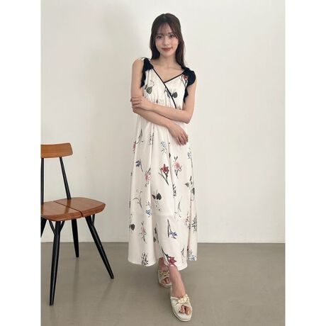 <b>シフォンリボンが踊るフラワー柄サテンワンピース</b>