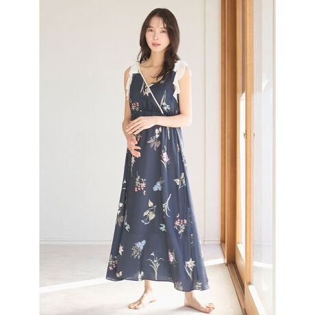 リアルで繊細な大柄のフラワーパターンが癒しを届けてくれる、なめらかなサテン素材のワンピースです。