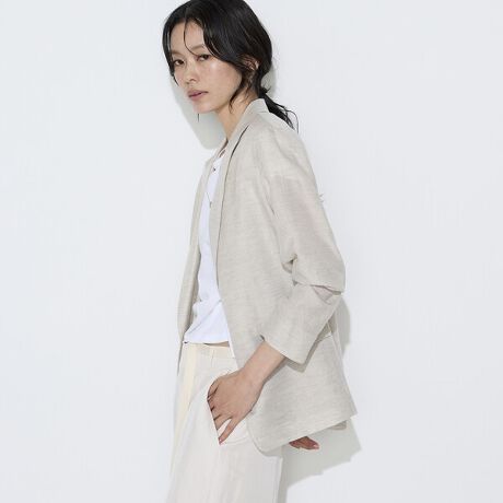 麻のナチュラルさを残しつつ、艶とドレープ感が大人っぽい上品な風合いに仕上げています。