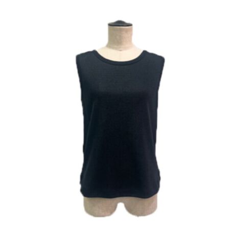 上品なラメジャージーでつくる、前後で異なるネックラインを楽しめる2WAY仕様のエッセンシャルタンクトップです。