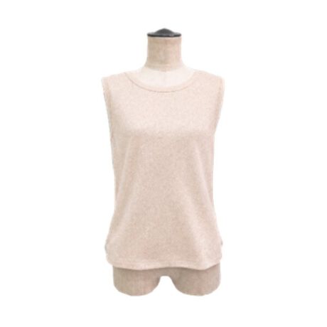 上品なラメジャージーでつくる、前後で異なるネックラインを楽しめる2WAY仕様のエッセンシャルタンクトップです。