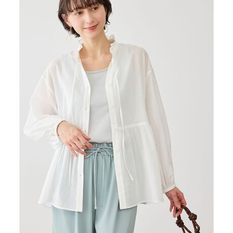 マルイウェブチャネル   /   ロペピクニック   /   トップス   /   シャツ   /   お着軽シャツシリーズ コットンボイルスタンドフリルシャツ/接触冷感・通気性