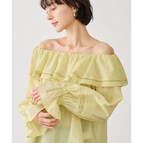 お着軽シャツシリーズ コットンボイルレース使いオフショルブラウス/接触冷感・通気性