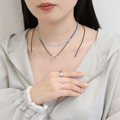 ・異なる素材とデザインの組み合わせで首元に奥行きのあるレイヤードを演出