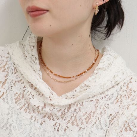 ・ビーズネックレスとアンカーチェーンネックレスを組み合わせた2本セット