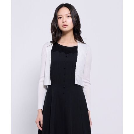 ディテールにこだわった、大人のための上質ニットボレロ。ドレスやノースリーブトップスの羽織りとしてはもちろん、きれいめからフェミニンまで幅広く活躍します。繊細なリブ編みが縦のラインを強調し、コンパクトなボレロ丈でもすっきりとした印象に。軽やかな編み地が身体にやさしく沿い、羽織るだけでバランスの良いスタイリングが完成します。