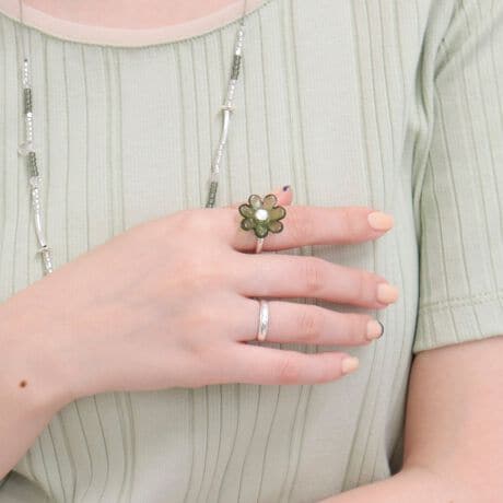・クリアの透け感が魅力のフラワーモチーフにビジューを組み合わせたリング