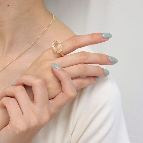 手元に視線を集めるフェイクストーンリング