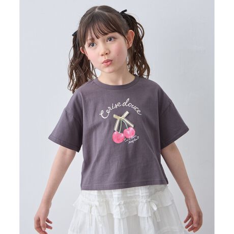 ANY KIDS/エニィキッズ/any FAM/any FAM KIDS/エニィファム/エニィファムキッズ/キッズ/トップス/半袖/Tシャツ/丈短/クロップド丈/さくらんぼ/チェリー/フルーツ/リボン/コットン/通園/通学/おでかけ/デイリー/女の子/ガール/サスティナブル商品/トレンド
