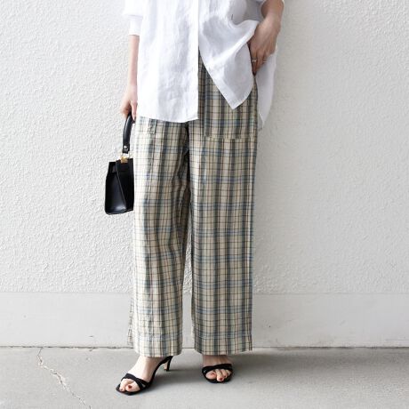 フレンチリネンにヴィスコースをブレンドした先染めチェックを使用。