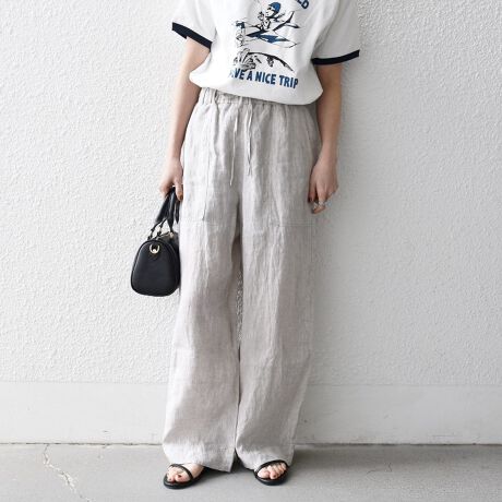 軽やかなリネンの風合いが魅力のワイドイージーパンツ。