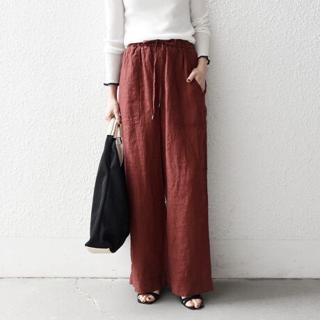 軽やかなリネンの風合いが魅力のワイドイージーパンツ。